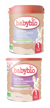 Lait pour nourrissons Optima 1 de la marque BABYBIO et Lait pour nourrissons Caprea 1 de la marque BABYBIO
